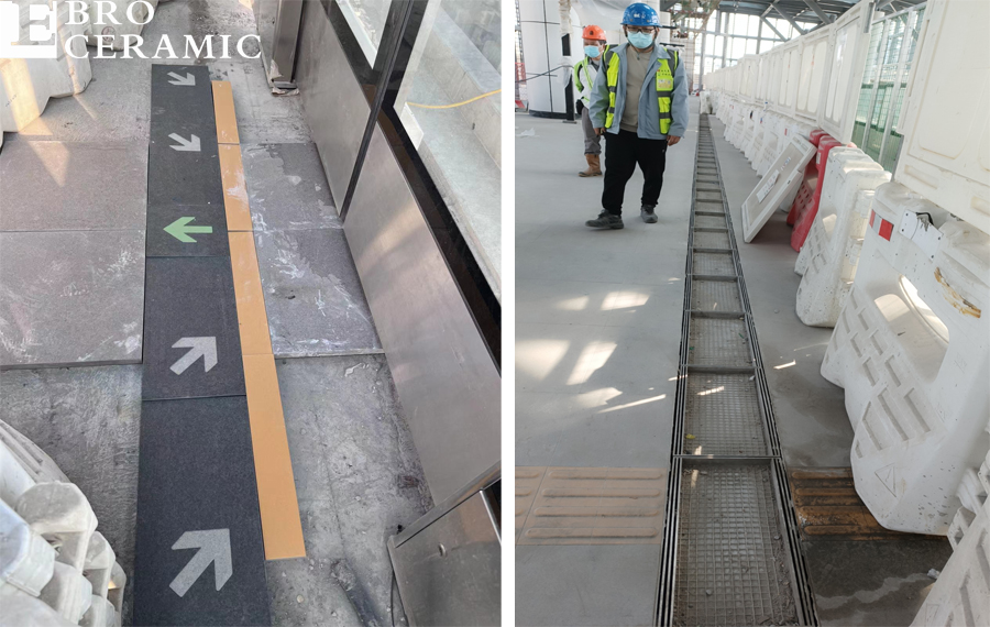 用砖:防滑R13 600X600X30MM / 600X600X20MM石英砖,以及室内外墙地砖等。